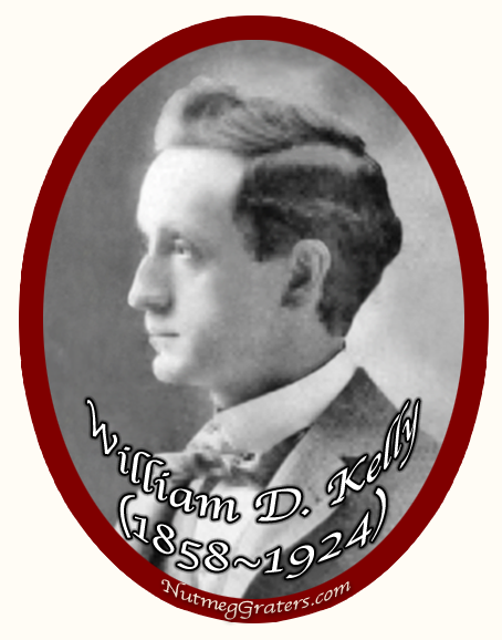 Our nutmeg grater story begins about 1867, a few years after the arrivals of William W. Owen (1840-1899), who at age 19 came to Muskegon in 1859 and Daniel J. Kelly (1833-1903), who at age 32, appeared in 1865. These two town-fathers soon intertwine in a brief business venture. While no documents exist pertaining to the nutmeg grater's actual manufacture or distribution ~ an Owen & Kelly patent # 72223 for an "Improved Nutmeg-Grater" was issued on Tuesday, December 17, 1867 (Fig A1). Experienced in merchandizing a general store, we surmise "Billy" Owen was the primary inventor of the nutmeg grater, and as owner of a planing mill, Daniel Kelly provided the manufacturing site. Witnesses listed on the patent were Muskegon locals: John A. Peck was a co-worker with "Billy" and Samuel D. Murray operated a confectionery-restaurant near Owen's place of work. The nutmeg grater (Fig A2) is fabricated from sheet copper, and embossed across the wheel-house case, it reads: "Owen & Kelly" "Muskegon" "Mich.". In construction, the grater conforms exactly with its patent specifications. The Owen & Kelly patent is sited in Scientific America among a lengthy listing of newly patented inventions, but no other advertisement, promotion or sales record is known. Based on its rarity among public and private collections, it is conclusive that this nutmeg grater was in production for a very brief period. The Owen & Kelly nutmeg grater is very scarce.
