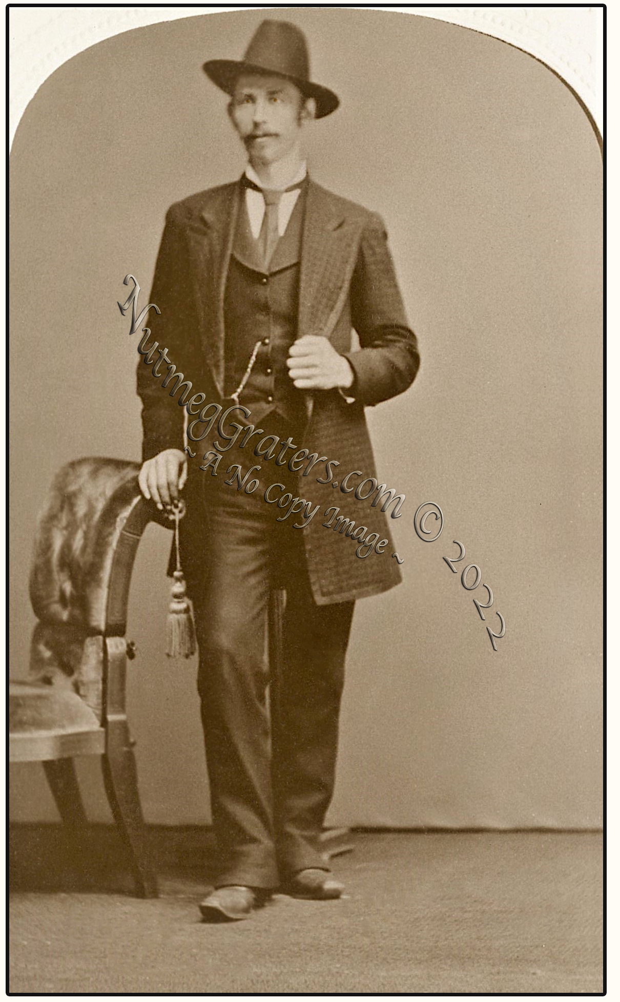 F. Edward Snyder was born in Massillon, Ohio, living there as a child until 1864 when his parents relocated to their new farm in Albion, Michigan. Following this, while in his youth, Edward periodically resided between his parent's home in Michigan and his grandmother's home in Massillon. The Snyder and Hess names of Stark County, Ohio were long intertwined ~ both as family and in metal working. Jacob F. Hess had opened a tin shop and gas~plumbing business in Massillon in 1863. In 1867, at the age of 14, Edward apprenticed for 1½ years with Hess to learn the art of tinsmithing, before advancing his career by obtaining a degree from Albion College in Michigan. Returning to J. F. Hess & Bros. in 1873, Edward resumed employment as the bookkeeper. When in 1882, Jacob F. Hess & All establishes a large foundry and machines shop for "the manufacture of cooking and heating stoves, farm boilers and castings to order," the now 29 year old F. Edward Snyder partnered with David Schworm becoming the new proprietors of the tinsmithing business; renaming the business Snyder & Schworm. [SEE: 1884 & 1887 Advertisements.] As a new business owner, Edward obtained patents in 1882 for a portable pump and sprinkler and in 1885 for a beer forcing pump. About 1887, Edward purchased his partners interests, becoming the sole owner, before selling the business in 1891 to Jacob Pinkler and Charles Snyder. Edward envisioned a bolder enterprise. [NOTE: Brenda Jenkins is a decendant of Frank Edward Snyder and contributed his studio photograph (standing) to NutmegGraters.Com (on 1-14-2022). Currently, Snyder has four living decendants. Thank you for your contribution.]
