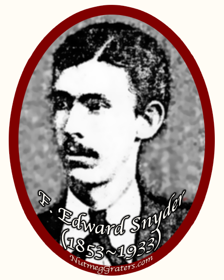 As a novelty manufacturer, Frank Edward Snyder (1853~1933) was an entrepreneur, an inventor, and a novel thinker. Widely known by his middle name, F. Edward Snyder patented a nutmeg grater in 1904, a product remaining on the market for over two decades.